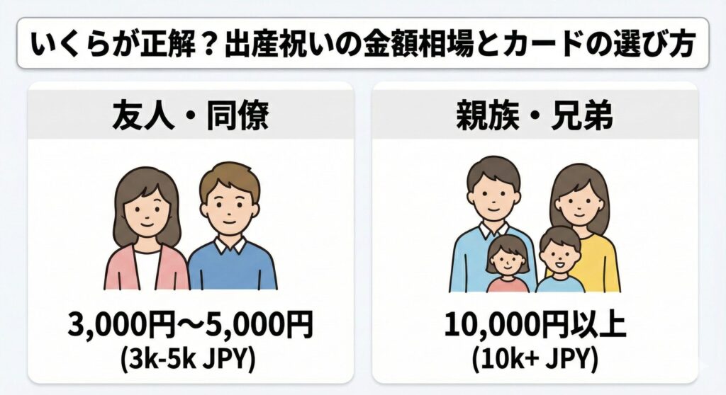 • 3,000円: 相手にお返し(内祝い)の気を使わせたくない場合。一番気軽に渡せます。